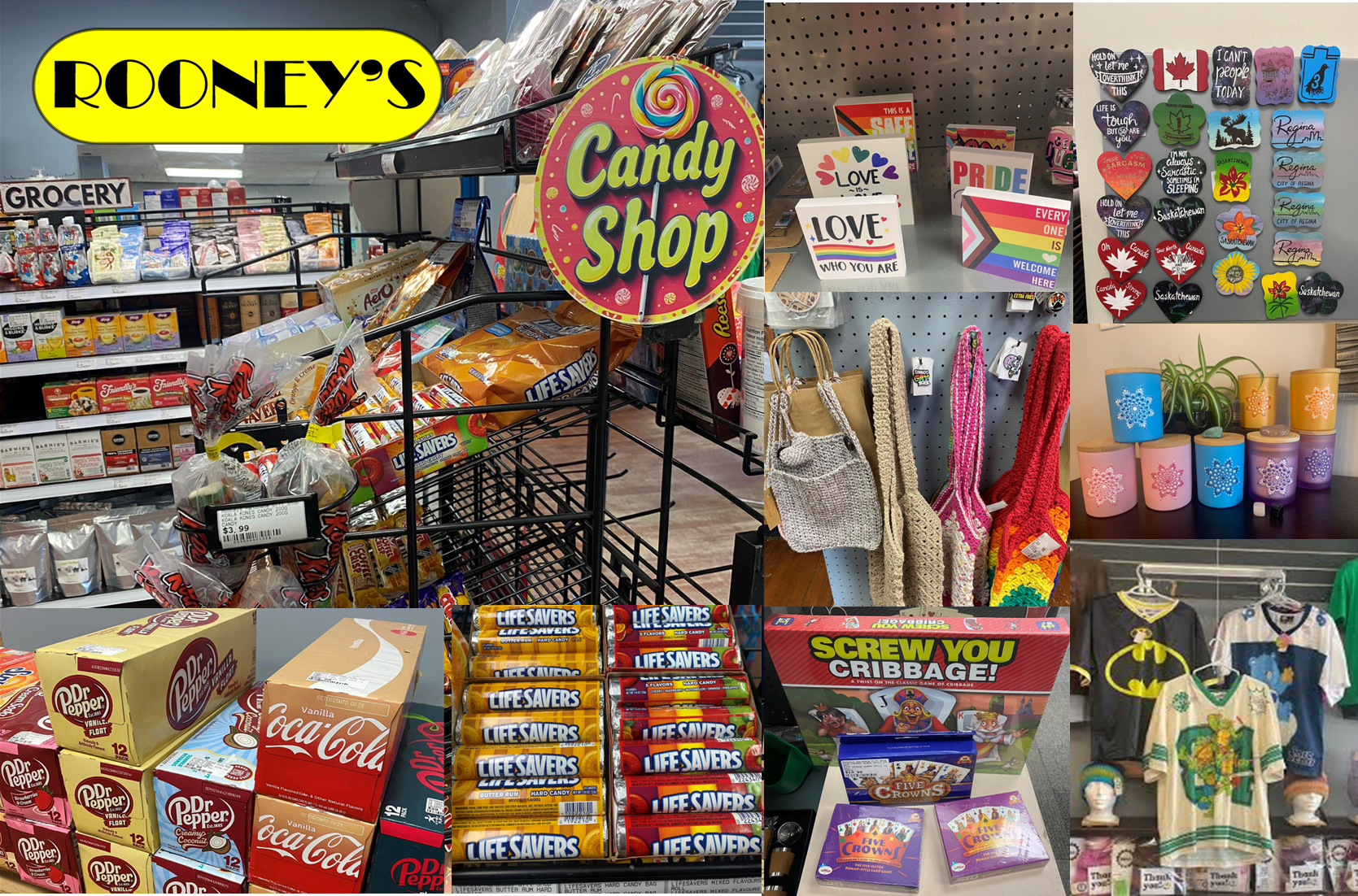 For Pride products in Regina, Rooney's Gift Shop & Consignment store is a great place to check out. We are located in Seller Block Building on 6th & Albert Street and have been selling Pride-themed items for years. We offer a variety of items, including shirts, mugs, pins, ties, and Flags of course, and even feature products from local artists and creators. We are a safe space for everyone.