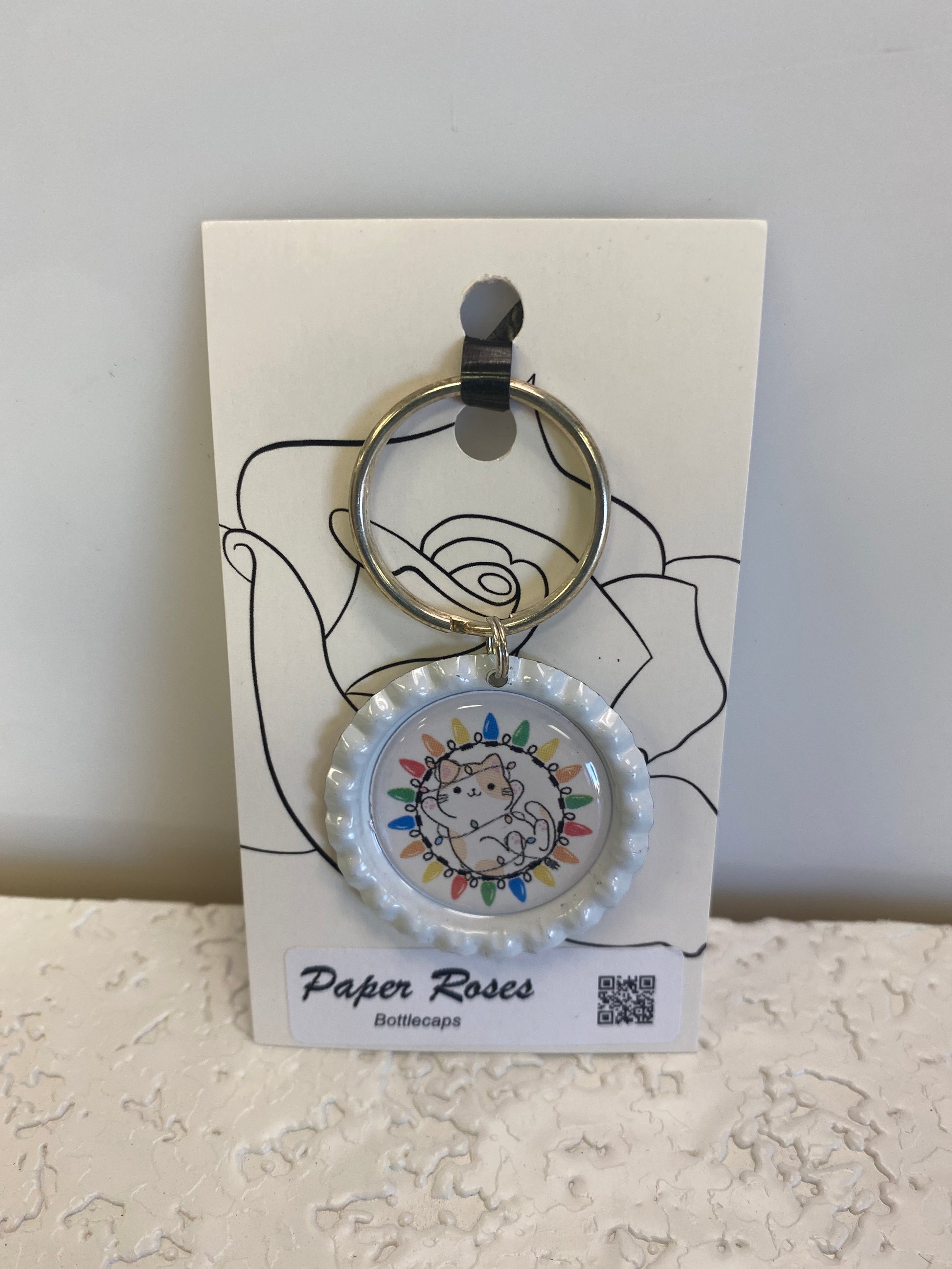 LIGHTS KITTY BOTTLE CAP KEYCHAIN
